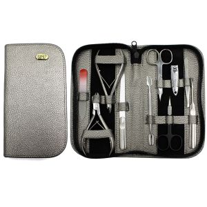 Маникюрный набор SPL 77301BM от известного немецкого бренда включает все необходимые принадлежности, с помощью которых вы быстро упорядочите кутикулу и ноготки, придав им необходимую длину и форму. Состав набора:Две пилочки;Ножницы для кутикулы;Ножницы для ногтей;Скошенный пинцет;Двухсторонний шабер;V-образный триммер для обрезки кутикулы;Книпсер;Кусачки для обрезки кожи (кутикулы);Кусачки для педикюра. Особенности:Инструменты можно стерилизовывать и дезинфицировать химическими средствами;Все инструменты, кроме пилы, изготовлены из крепкой нержавеющей хирургической стали;Ручная заточка и тщательная полировка – гарантия того, что все предметы прослужат в течение длительного времени;Серебристая поверхность красиво выглядит, а полировка придает ей блеск;Футляр набора изготовлен из крепкой искусственной кожи, не требующей сложного ухода.
