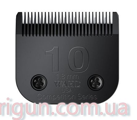 Нож Wahl Ultimate Competition устанавливают на грумерские машинки с гнездом А5 для среза длиной 1.8 мм. Редкие зубцы легче проходят через шерсть, не цепляются за волос, давая гладкий равномерный срез.\nНожевой блок Wahl 1.8 mm сделан из закаленной легированной стали с черной отделкой. Высокое содержания углерода в легированном сплаве повышает прочность лезвий.\nНожевые блоки Wahl серии Ultimate Competition меньше греются, лучше скользят по поверхности шерсти или волос, давая до 2,5 раз ускоренный срез без следов стрижки. Черненые ножи Wahl рекомендованы для продолжительных работ.\nСовместимость с машинками: Thrive 808-2, 808-3, 808-3S, 805, 900N2, Moser 1221, 1225, 1245 Max 45/Class 45, 1250 Max 50/Class 50, Wahl 1247 KM2, 1260 KM5, 1261 KM10, 1290 Avalon, 2018 Storm, Takumi 900ED, 990, GTS 808, 888 35W, Monella MF-1A, Artero M339 Premium 2 Speed, Oster A5, Andis AG, AGC, AGC2, AGP, AGRC, AGCL, AGR+, AGRV, DBLC Pulse ZR, MBG, MBG-2, SMC и другие модели машинок с гнездом А5