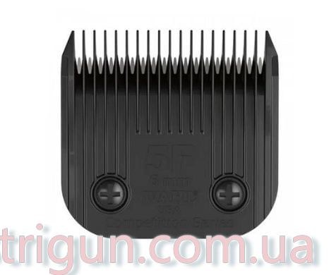 Нож Wahl Ultimate Competition устанавливают на грумерские машинки с гнездом А5 для среза длиной 6 мм. Редкие зубцы легче проходят через шерсть, не цепляются за волос, давая гладкий равномерный срез.\nНожевой блок Wahl 6 mm сделан из закаленной легированной стали с черной отделкой. Высокое содержания углерода в легированном сплаве повышает прочность лезвий.\nНожевые блоки Wahl серии Ultimate Competition меньше греются, лучше скользят по поверхности шерсти или волос, давая до 2,5 раз ускоренный срез без следов стрижки. Черненые ножи Wahl рекомендованы для продолжительных работ.\nСовместимость с машинками: Thrive 808-2, 808-3, 808-3S, 805, 900N2, Moser 1221, 1225, 1245 Max 45/Class 45, 1250 Max 50/Class 50, Wahl 1247 KM2, 1260 KM5, 1261 KM10, 1290 Avalon, 2018 Storm, Takumi 900ED, 990, GTS 808, 888 35W, Monella MF-1A, Artero M339 Premium 2 Speed, Oster A5, Andis AG, AGC, AGC2, AGP, AGRC, AGCL, AGR+, AGRV, DBLC Pulse ZR, MBG, MBG-2, SMC и другие модели машинок с гнездом А5