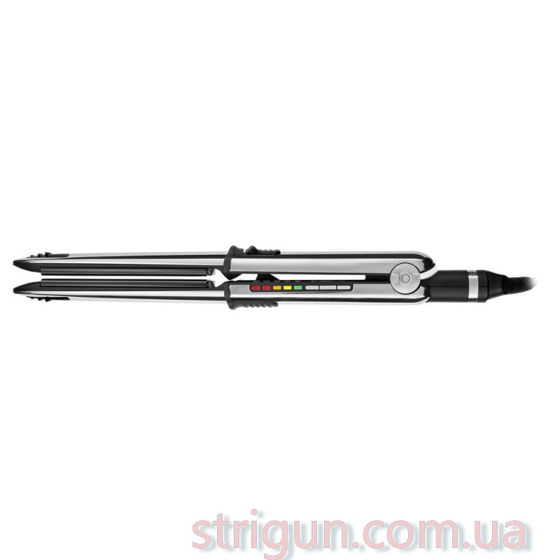 Elipsis3000 BAB3000EPE - модель с уникальной формой корпуса из нержавеющей стали с хромированным покрытием. Новинка является уникальной для профессионального инструмента в индустрии красоты. Своей разработкой BaByliss Pro меняет моду и стиль в использовании инструментов для выпрямления волос.\nПрежде всего, это корпус – он изготовлен из нержавеющей стали и имеет хромированное покрытие. Такое решение обеспечивает хороший и плавный переход между пластинами, а так же позволяет использовать устройство в качестве плойки, за счет наличия специальных фиксаторов и высокой теплопроводности корпуса. Металлический корпус очень устойчив к ударам и деформациям, а это означает долголетнюю беспроблемную эксплуатацию устройства. Элементы корпуса так же содержат теплостойкий пластик Ryton и силикон, которые повышают безопасность устройства.\nНовинка имеет и новые пластины размером 110 x 31 мм с общей площадью выпрямления около 34 см/2. Кроме того, пластины имеют фирменное металлизированное покрытие с технологией EP 5.0, которая имеет массу достоинств в сравнении с любыми существующими технологиями покрытия, применяемыми в утюжках для волос. Данная технология основана на принципе гальваники и не содержит никаких дополнительных химических элементов. Это позволяет иметь пластинам невероятное скольжение по волосам, что в свою очередь бережет волосы от микроповреждений. Благодаря системе плавающих пластин волосы не подвержены излишнему давлению, а прижимная сила равномерно распределяется по всей поверхности пластин.\nBAB3000EPE имеет электронное управление с 5-ю температурными режимами и керамическим нагревательным элементом, который максимально быстро распределяет тепло по всей поверхности, а так же обеспечивает экономию электроэнергии за счет очень быстрого нагрева и системы энергосбережения.\nВыпрямитель Elipsis3000 снабжен системой ионизации, которая построена на технологии IonMultiplier. Это активная технология генерирования отрицательных ионов, благодаря чему выпрямитель сделает волосы более послушными и мягкими. Снимая статику с волос, отрицательные ионы так же способствуют здоровому внешнему виду и сохранению естественной влаги в волосяном волокне.\nОсобенности модели Elipsis3000 (BAB3000EPE):\nХромированный корпус из нержавеющей стали\nРазмер пластин 31 x 110 мм\nВозможность использования для завивки\nУникальная элипсообразная форма корпуса\nЭлектронный контроль температуры\n5 режимов нагрева – 150, 170, 190, 210, 230 C\nLED дисплей для индикации температуры и режима работы\nПлавающие пластины\nСистема ионизации\nВ комплекте: термоковрик и термоперчатки