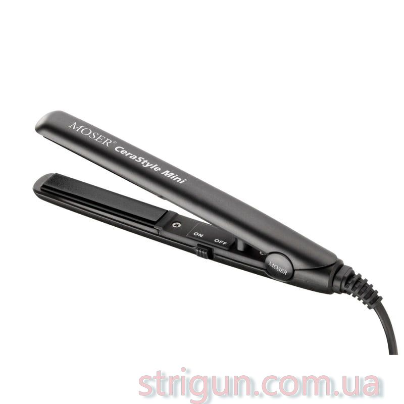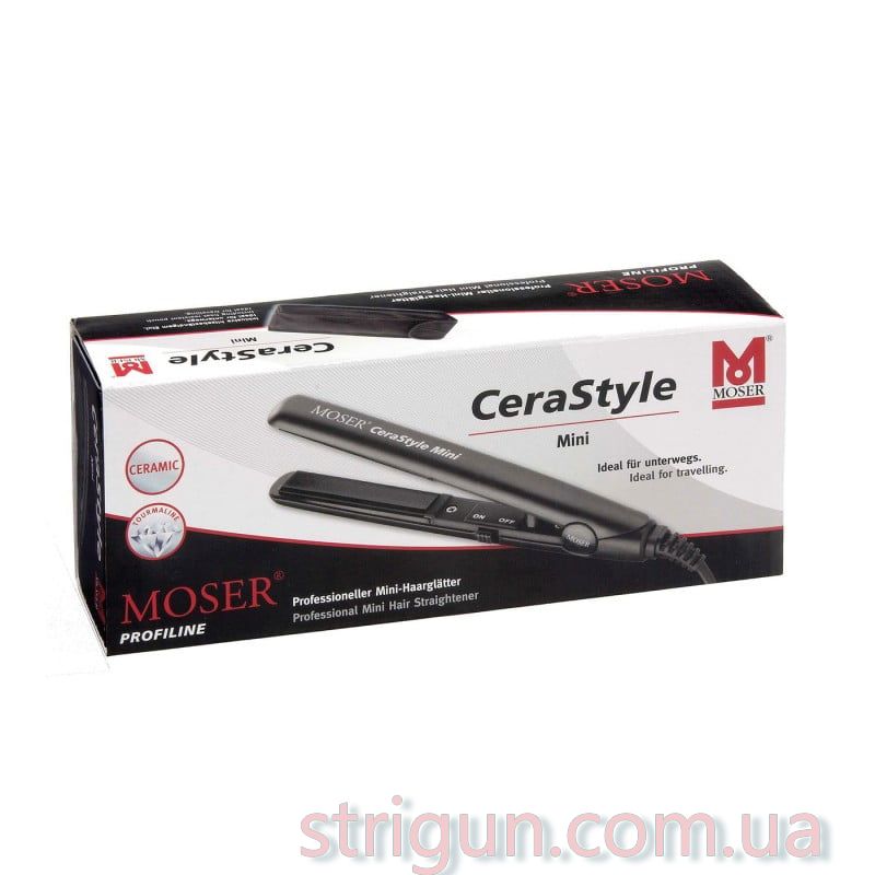 Профессиональный мини- утюжок для волос Moser для легкой транспортировки. Покрытие пластин сделано из микса керамики, турмалина и частиц серебра, что делает выпрямление по-настоящему гладким, плавным, добавляет волосам блеска и снижает статическое электричество.\nПластины размером 13 x 60 мм\nЭлегантный дизайн\nСтатическая температура нагрева 180 С\nУльтрабыстрый нагрев (не более 60 секунд)\nПрофессиональный вращающийся шнур длиной 2.5 м\nРаботает от сети 220 - 240 В\nКомплектуется фирменным чехлом